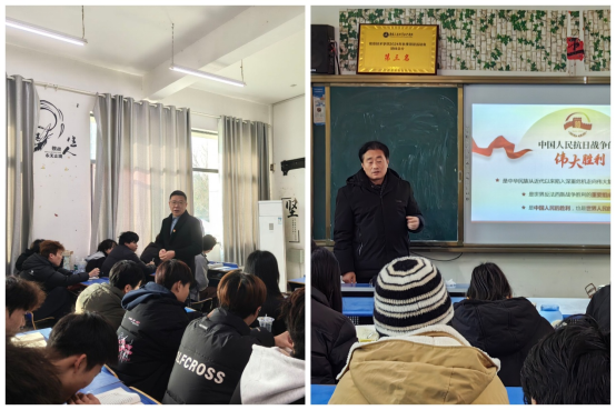 党委副书记丁波,党委委员、副校长包科杰同题共答,立足学生成长实际与时代发展要求,从不同维度解读伟大抗战精神的时代价值。丁书记紧扣青年学生的使命与担当,着重剖析了伟大抗战精神的丰富内涵及其在新时代的传承价值。他强调铭记历史不是为了延续仇恨,而是要从峥嵘岁月中汲取前行的智慧与奋进的力量,激励同学们深耕专业学习,锤炼过硬本领,在实践磨砺中厚植责任意识,以青春之我、奋斗之我守护来之不易的和平之花。包校长的授课则更注重历史与现实的结合,通过讲述抗战时期青年学子投笔从戎、以身报国的感人故事,与当代学生的成长环境展开鲜明对比,让同学们深刻体会到新时代青年的使命荣光与责任担当,号召大家将伟大抗战精神融入技能学习与成长实践,坚定技能成才、技能报国的信念,在新时代的征程中奋勇争先、挺膺担当。